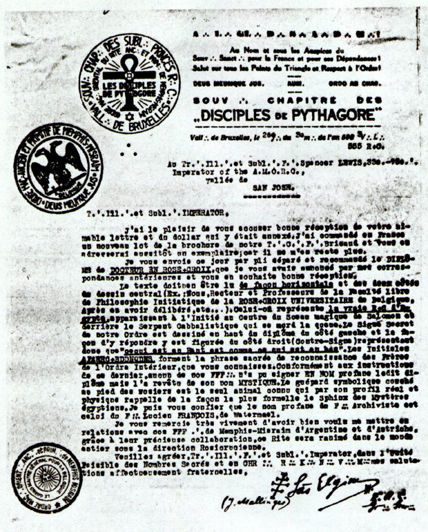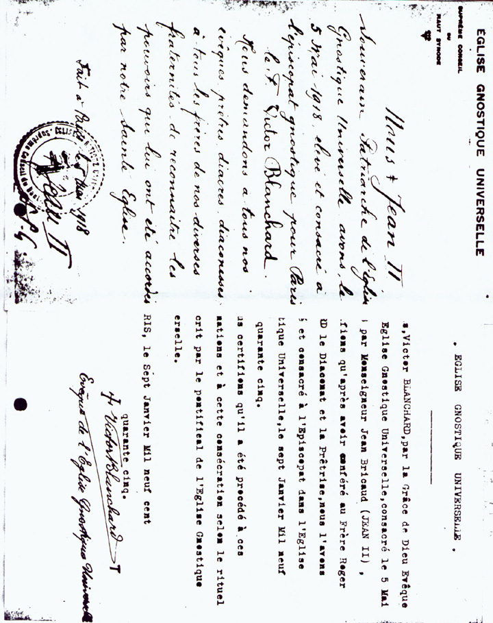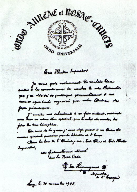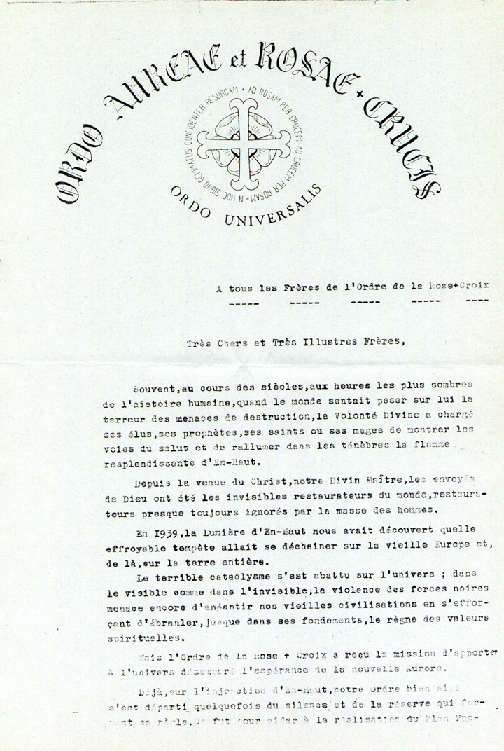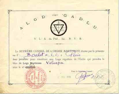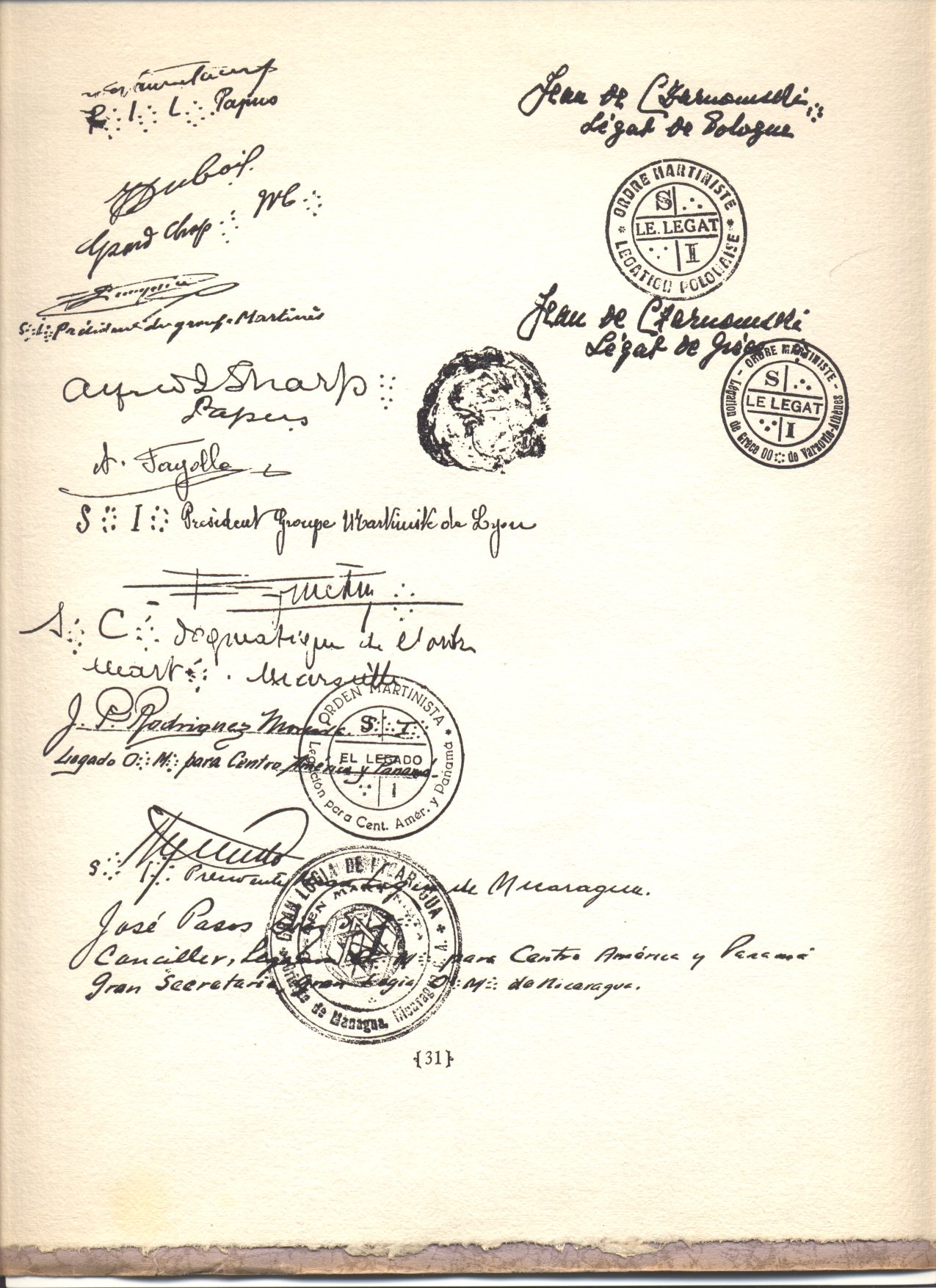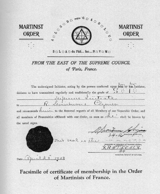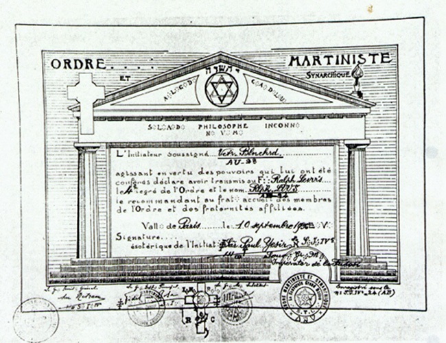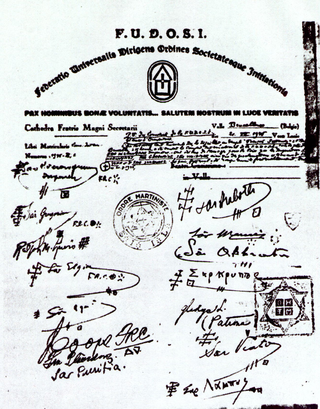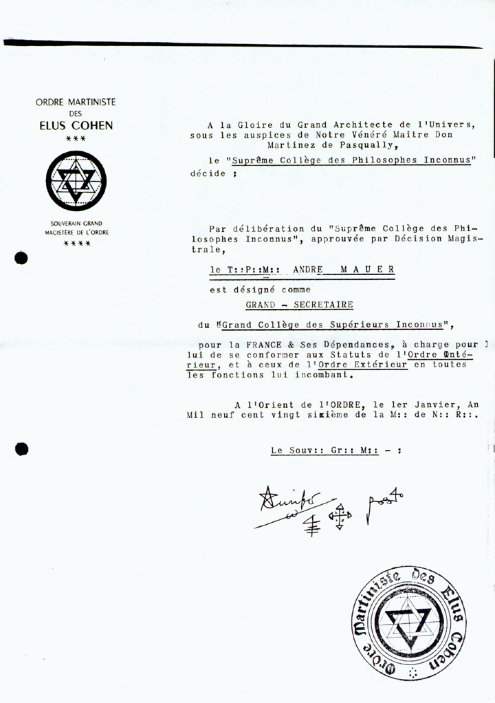bladzijde van het stichtingsdocument van L'Ordre Martiniste Initiatique door Robert
