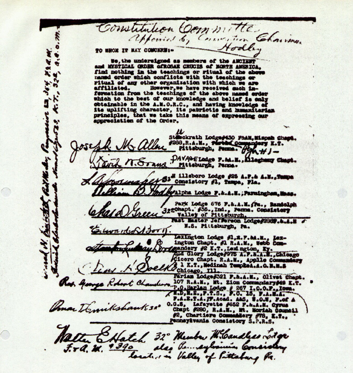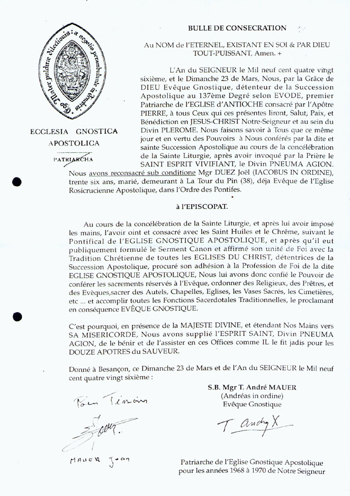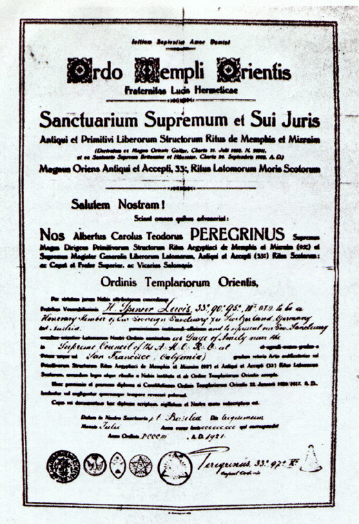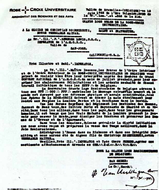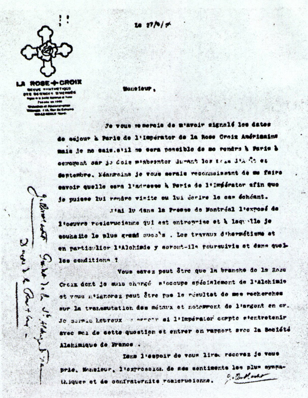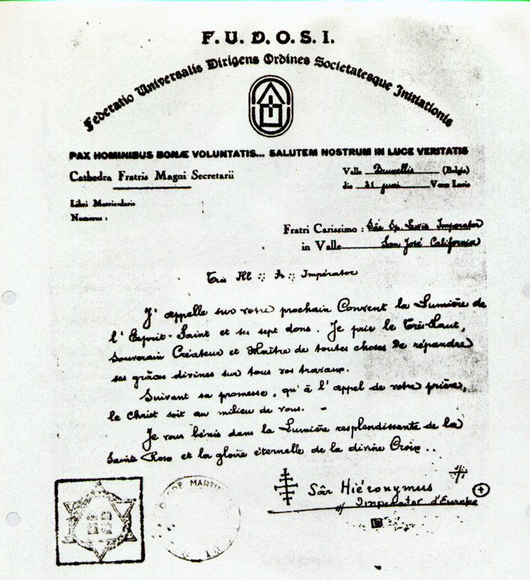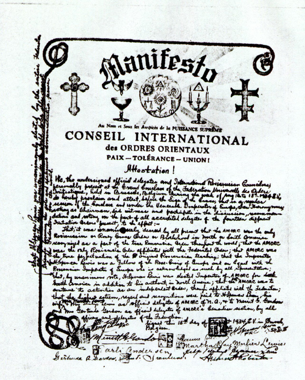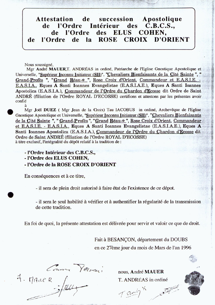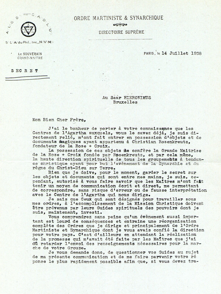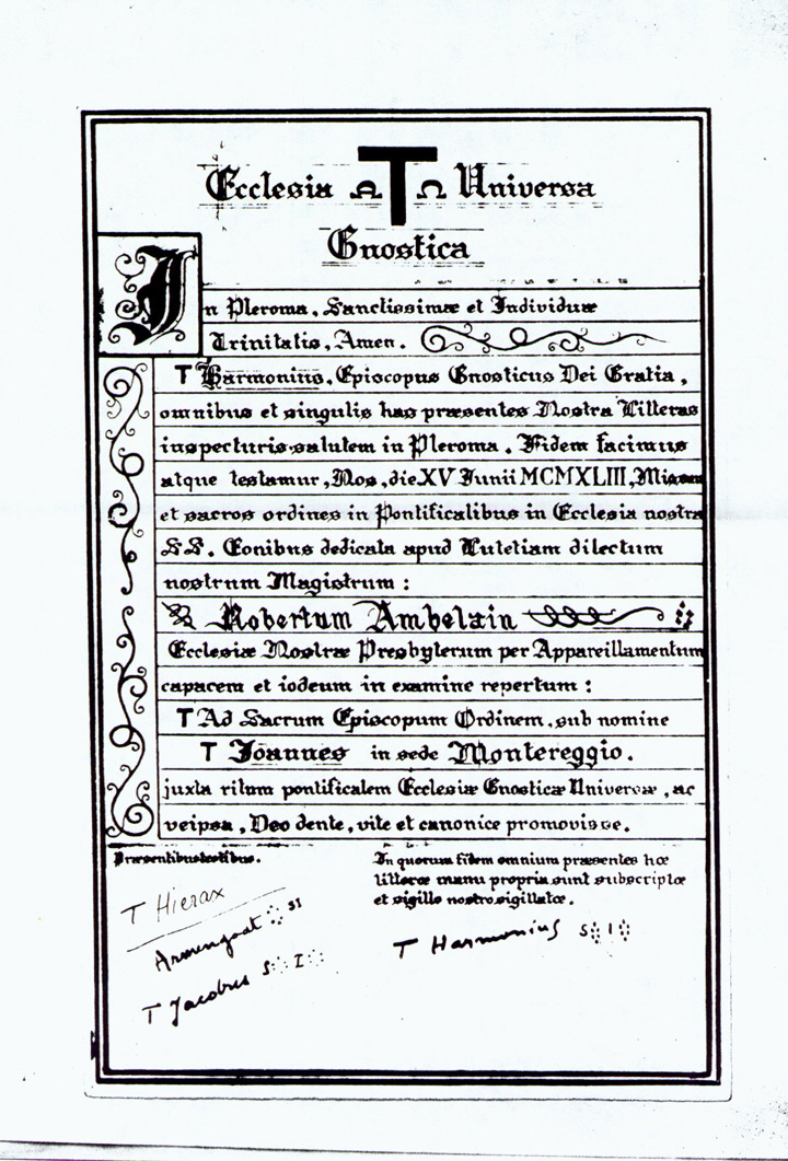 bladzijde van het stichtingsdocument van L'Ordre Martiniste Initiatique door Robert