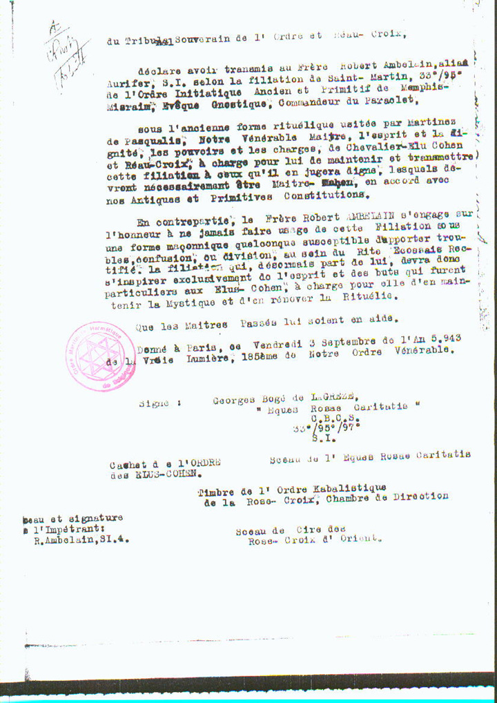 van de Elus-Cohen op 3/9/1943 door Robert Ambelain en Geoges Bog� de Lagr�ze ( deel 2 )