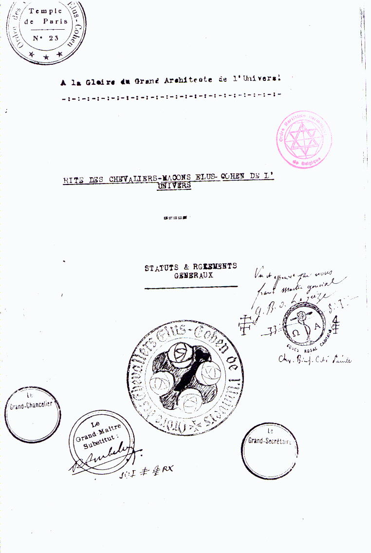 van de statuten en reglementen van de Elus-Cohen van Geoges Bog� de Lagr�ze